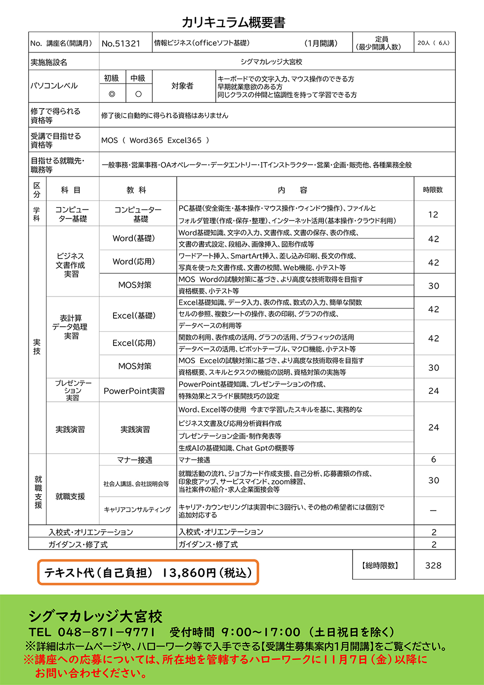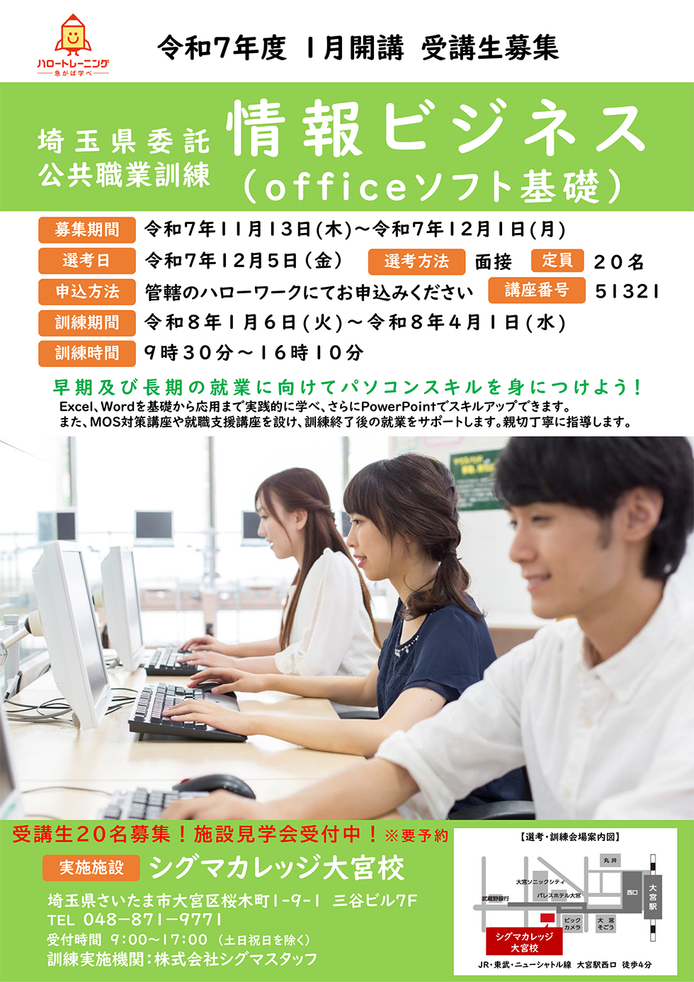 • 埼玉県委託 公共職業訓練 情報ビジネス(officeソフト基礎)