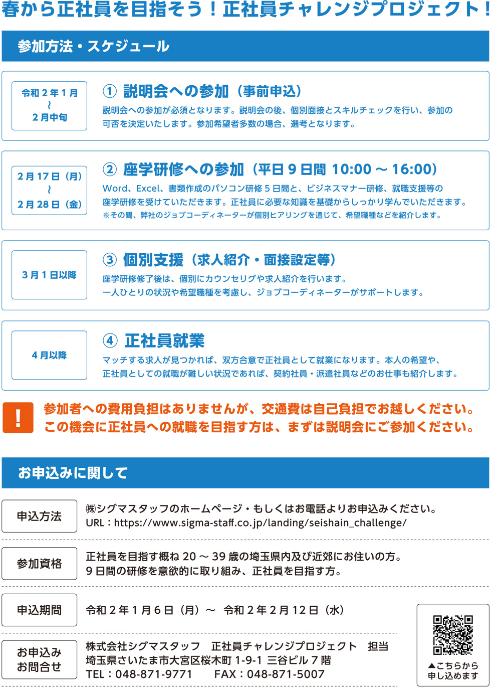 ※お問い合わせフォームの件名は「正社員チャレンジプロジェクト」を選択してください。