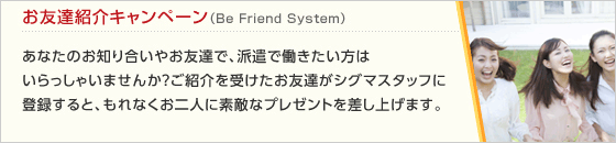 お友達にもぜひ、シグマスタッフをご紹介ください!
